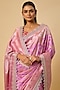 Featuring a lavender saree in banarasi silk base with zardosi hand embroidery. It is paired with an unstitched blouse. Accentuate the designer saree with pearl or swarovski jewellery, embellished heels and a potli bag for a bridal look, Perfect for a wedding, sangeet or engagement ceremony.