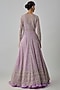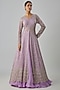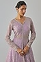 Featuring a lavender jacket in organza base with hand embroidery. It is paired with a blouse and skirt. Accentuate it with kundan jewellery and block heels for wedding ceremony or festive occasions.
