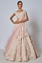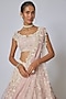 Featuring a light pink lehenga in organza base with hand embroidery. It is paired with a blouse and a dupatta. Accentuate it with statement jewellery and heels for a wedding or engagement ceremony.