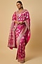 Featuring a magenta saree in banarasi silk base with zardosi hand embroidery. It is paired with an unstitched blouse. Accentuate the designer saree with swarovski or silver jewellery, embellished heels and a potli bag for a bridal look, Perfect for a wedding, sangeet or engagement ceremony.