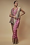 Featuring a magenta pink handwoven saree in banarasi silk base with zardosi and brocade embroidery. It is paired with an unstitched blouse fabric. Style this Banarasi silk saree with statement jewelry for a luxurious touch, perfect for weddings and special occasions.
