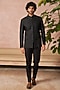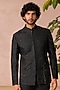 Featuring a black bandhgala in raw silk base. It is paired with a kurta, pocket square and pants. Style it with a watch and pair of loafers for a traditional look, Perfect attire for a wedding, engagement or sangeet ceremony.