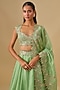 Featuring a mint green lehenga in organza base with hand embroidery. It is paired with a blouse and a dupatta. Accentuate it with diamond jewellery and heels for an elegant statement, Perfect for weddings, receptions and grand festive occasions.
