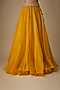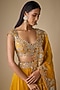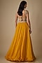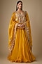 Featuring a mustard lehenga in organza base with hand embroidery. It is paired with a blouse and a dupatta. Accentuate with polki jewellery and block heels for sangeet, haldi ceremonies or weddings.