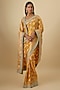 Featuring a mustard saree in silk banarasi base with hand embroidery and a zardosi border detail. It is paired with an unstitched blouse piece. Style it with diamond jewellery and block heels, perfect for a wedding, sangeet or engagement ceremony.