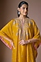 Featuring a mustard yellow kaftan in dupion silk base with zardosi hand embroidery. It is paired with pants. Style it with minimal zircon jewellery, kolhapuri flats or block heels for festive gatherings, pooja ceremony or pre-wedding festivities.