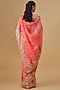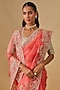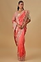 Featuring a coral saree in organza base with hand embroidery. It is paired with an unstitched blouse piece. Accentuate it with traditional jhumkas and heels for a regal charm, Perfect for weddings, festive occasions and grand cultural celebrations.