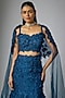 Featuring a navy blue lehenga in organza base with hand and machine embroidery. It is paired with a blouse and a dupatta. Accentuate it with statement jewellery and block heels for weddings or sangeet ceremonies.