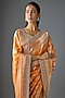 Featuring an orange saree in banarasi silk base with hand embroidery and zardosi border detail. It is paired with an unstitched blouse piece. Accentuate with polki jewellery and block heels for sangeet ceremonies or weddings.