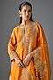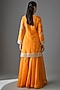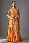 Featuring an orange kurta in dupion silk base with hand embroidery. It is paired with sharara pants and a dupatta. Accentuate with polki earrings and block heels for haldi ceremonies or weddings.