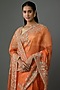 Featuring an orange saree in organza base with hand embroidery. It is paired with an unstitched blouse piece. Accentuate it with statement jewellery and heels for a wedding, engagement or sangeet ceremony.