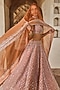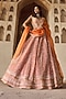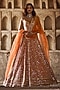 Featuring an orange lehenga in organza base. It is paired with a blouse and a glass organza dupatta. Accentuate it with statement jewellery, polti, low bun and heels for a wedding, sangeet or engagement ceremony.