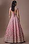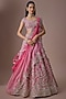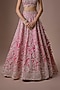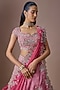 Anushree Reddy features a pink ombre lehenga in organza base embroidery. It is paired with an embroidered blouse and a dupatta. Style this designer set with zircon jewellery, an embellished clutch bag and block heels, perfect for a wedding or engagement ceremony.