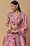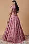 Featuring a pink lehenga in organza base with thread work. It is paired with a matching blouse and a dupatta.