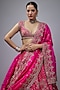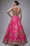 Featuring a pink lehenga in raw silk base with hand embroidery. It is paired with a blouse and a dupatta. Accentuate with statement jewellery and heels for a wedding, sangeet or engagement ceremony.