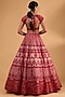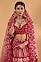 Featuring a pink and red lehenga in organza base with hand and machine embroidery. It is paired with a blouse and a dupatta. Accentuate it with statement earrings and heels for a wedding, engagement or sangeet ceremony.