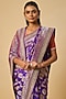 Featuring a purple saree in banarasi silk base with zardosi hand embroidery. It is paired with an unstitched blouse. Accentuate the designer saree with kundan polki or silver jewellery, embellished heels and a potli bag for a bridal look, Perfect for a wedding, sangeet or engagement ceremony.