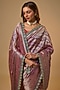 Featuring a purple saree in banarasi silk base with zardosi work. It is paired with an unstitched blouse piece. Accentuate it with pearl jewellery and heels for a graceful look, perfect for daytime weddings, festive gatherings, poojas or elegant family celebrations.