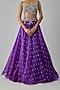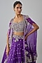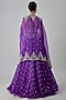 Featuring a purple cape in organza base with hand embroidery. It is paired with a blouse and skirt. Accentuate it with kundan jewellery and block heels for wedding ceremony or festive occasions.