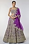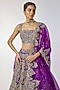 Featuring a purple lehenga in organza base with hand embroidery. It is paired with a blouse and a dupatta. Accentuate it with diamond jewellery and block heels for sangeet, engagement ceremonies or weddings.