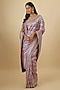 Purple Silk Banarasi Hand Embroidered Saree Set