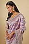 Featuring a purple saree in silk banarasi base with hand embroidery and a zardosi border detail. It is paired with an unstitched blouse piece. Style it with diamond jewellery and block heels, perfect for a wedding, sangeet or engagement ceremony.
