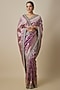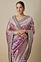 Featuring a purple banarasi handwoven saree in silk base with zardosi hand embroidery. It is paired with an unstitched blouse. Accentuate it with statement jewellery and heels for wedding or engagement ceremonies.