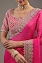 Featuring a rani pink saree in organza base with zardosi embroidery. It is paired with an embroidered unstitched blouse fabric. Enhance your attire with polki jewellery and heels for wedding or engagement ceremonies.