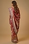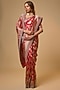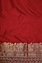 Featuring a red saree in banarasi silk base with zardosi work. It is paired with an unstitched blouse piece. Accentuate it with pearl jewellery and heels for a graceful look, perfect for daytime weddings, festive gatherings, poojas or elegant family celebrations.