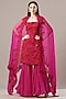 Featuring a red kurta in organza base with cutdana embroidery. It is paired with matching crepe sharara pants and an organza dupatta.