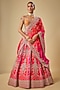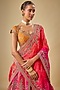 Featuring a red and hot pink lehenga in raw silk base with hand embroidery. It is paired with a blouse and a dupatta. Accentuate it with statement jewellery and heels for festive occasions or wedding ceremony.