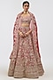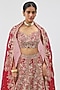 Featuring a red lehenga in organza base with hand embroidery. It is paired with an embroidered blouse and a dupatta. Accentuate with polki jewellery, a sleek bun and heels for a perfect bridal look.