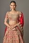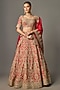 Featuring a red lehenga in organza base with hand embroidery. It is paired with a blouse and a dupatta. Accentuate it with statement jewellery and heels for a wedding or engagement ceremony.