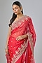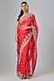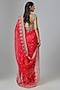 Featuring a red saree in organza base with hand embroidery. It is paired with an unstitched blouse. Accentuate it with statement earrings and heels for weddings or sangeet ceremonies.