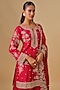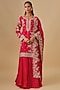Featuring a ruby red kurta in dupion silk base with hand embroidery. It is paired with sharara pants and a dupatta. Accentuate it with statement jhumkas and embroidered heels for a regal ethnic charm, Perfect for weddings, festive celebrations and traditional gatherings.