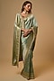 Featuring a sea blue saree in banarasi silk base with zardosi work. It is paired with an unstitched blouse piece. Accentuate it with pearl jewellery and heels for a graceful look, perfect for daytime weddings, festive gatherings, poojas or elegant family celebrations.