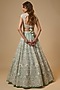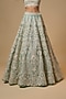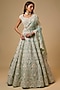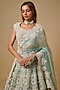 Featuring a sea blue lehenga in organza base. It is paired with a blouse and a dupatta. Style it with kundan polki jewellery and block heels, perfect for a wedding, sangeet or engagement ceremony.