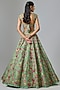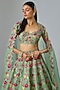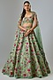 Featuring a sea green lehenga in organza base. It is paired with a blouse and a dupatta. Style it with kundan polki jewellery and block heels, perfect for a wedding, mehendi or engagement ceremony.