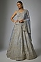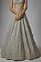 Featuring a sky blue lehenga in organza base with hand embroidery. It is paired with a blouse and a dupatta. Accentuate it with statement jewellery and block heels for weddings or sangeet ceremonies.
