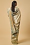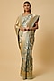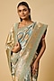 Featuring a teal blue saree in banarasi silk base with zardosi hand embroidery. It is paired with an unstitched blouse. Accentuate the designer saree with kundan polki or temple jewellery, embellished heels and a potli bag for a bridal look, Perfect for a wedding, sangeet or engagement ceremony.