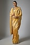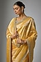 Featuring a yellow saree in banarasi silk base with zardosi hand embroidery. It is paired with an unstitched blouse fabric. Accentuate it with heavy jewellery and heels for an engagement, festive rituals or wedding ceremonies.
