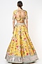 Featuring a yellow lehenga in raw silk base with floral print and sequins embroidery. It is paired with a matching blouse and an organza dupatta.