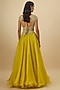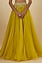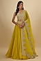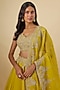 Featuring a yellow lehenga in organza base with hand embroidery. It is paired with a blouse and a dupatta. Style it with kundan polki jewellery and block heels, perfect for a wedding, haldi or engagement ceremony.