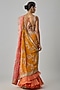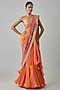 Yellow & Peach Chiffon & Organza Embroidered Ruffled Saree Set