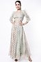Featuring a mint blouse in silk base with puffed organza sleeves. It is paired with a matching leheriya skirt having a bias-cut.