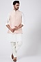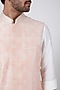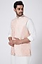 Featuring a baby pink bundi jacket in raw silk base with buttis cord work. This contains only one piece.