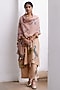 Featuring a peach kurta in handspun cotton base with thread handwork and kalamkari hand-painting. It is paired with pants and a munga silk stole. Style it with stud earrings and mules for a complete look.