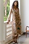 Featuring a peach kurta in silk base with hand-painted kalamkari including thread and cutwork hand embroidery. It is paired with satin silk pants. Perfect for an evening or casual wear.