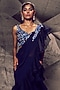 Featuring a blue saree in georgette base with floral and sequins embroidery, including organza ruffle. It is paired with blouse. Style it with a statement diamond set to complete the look.