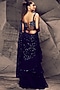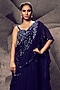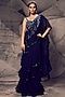 Featuring a blue layered saree in georgette base with floral, cutdana beads and sequins embroidery. It is paired with a net embroidered blouse. Style it with a statement diamond set to complete the look.